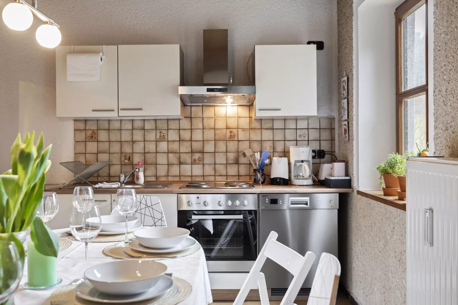 Ontsnap naar de vredige charme van Schönsee met dit zonovergoten appartement met twee slaapkamers, perfect voor gezinnen of kleine groepen. Op slechts een steenworp afstand van het bos biedt het een rustige omgeving met een balkon waar u 's ochtends koffie kunt drinken en van het uitzicht kunt genieten. Het interieur is warm en uitnodigend, alsof u een filmset betreedt, met centrale verwarming, comfortabele slaapkamers en stijlvolle accenten.