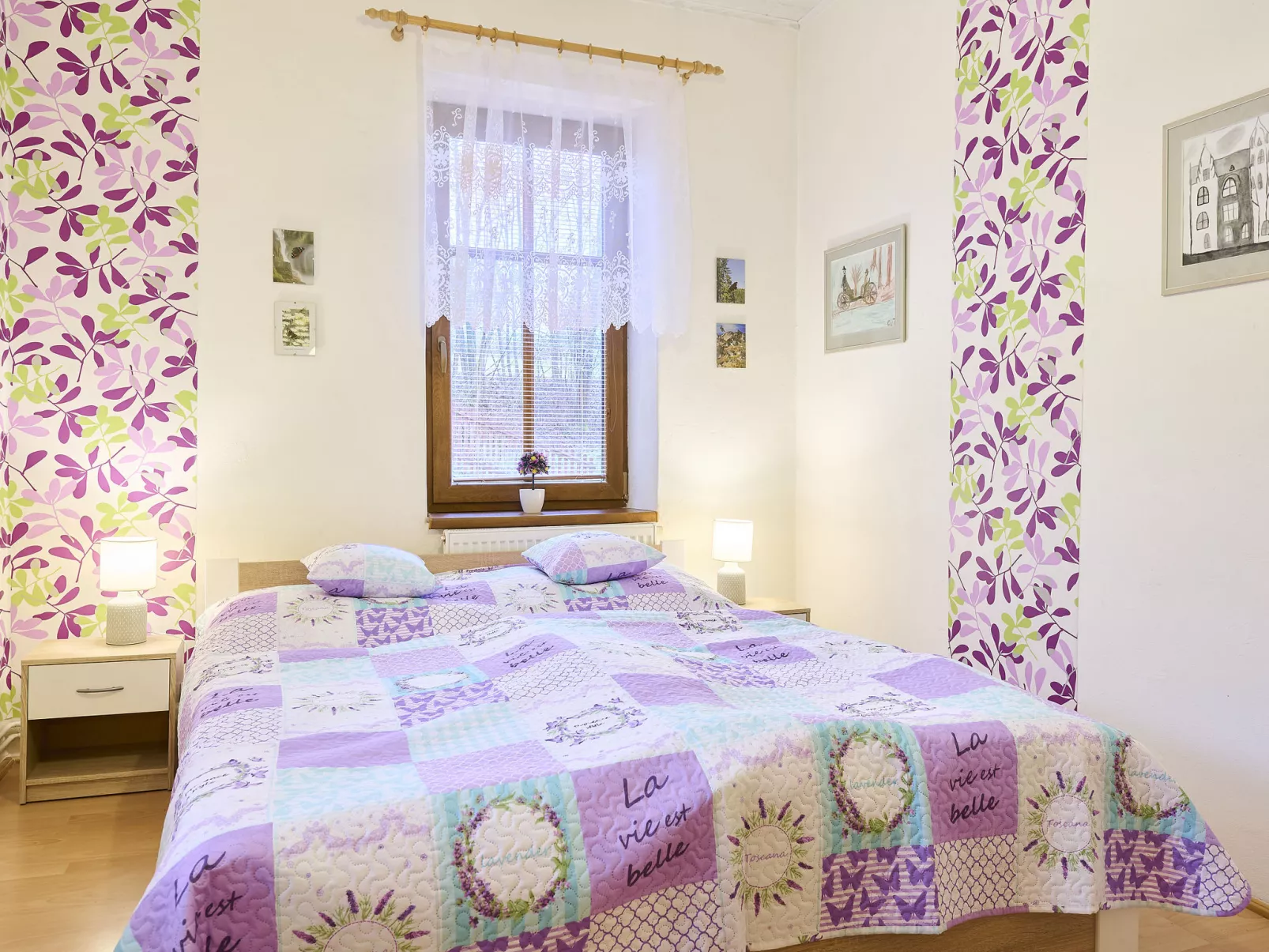 Huis 3-kamers 80 m2, op de bovenverdieping. Mooi ingericht: hal. Bovenverdieping: woonkamer 28 m2 met 1 bed, 1 slaapplaats, zwedenkachel en Sat-TV. Uitgang naar het balkon. 1 kamer met 3 bedden. 1 kamer met 2 bedden. Woonkeuken 22 m2 (oven, 4 keramische glas kookplaten, waterkoker, magnetron, elektrische koffiemachine) met eettafel. Badkamer, aparte WC. Balkon 6 m2, op het westen gelegen, zithoek in de tuin. Terrasmeubelen, barbecue. Mooi uitzicht op het bos. Ter beschikking: wasmachine. Internet (WiFi, gratis). Parkeerplaats (overdekt, omheind) bij het huis. Geschikt voor families. Maximaal 1 huisdier/hond toegestaan. De kamer met 3 bedden is een doorgangskamer.