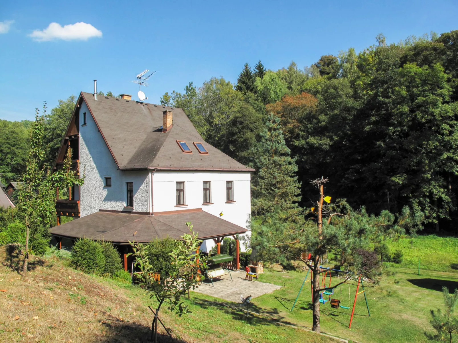 Zlatá Olešnice, 16 km van Tanvald: De voormalige molen met eigen krachtcentrale, is tegenwoordig een familievilla, romantisch gelegen aan de beek de Zaltnik mooi, historische eengezinswoning "Zlata Olesnice", van 2 verdiepingen, gerenoveerd in 2004. Beneden Zlatá Olešnice, aan de rand van de plaats, geïsoleerde, rustige, zonnige ligging, 50 m van de bosrand, 20 m van het beekje, aan een doodlopende weg, te midden van groen. Voor alleengebruik: terrein 4.000 m2, tuin 1.000 m2 (omheind) met gazon en bomen, vijver. Patio (20 m2), terras (30 m2), tuinmeubelen, barbecue, stookplaats, kinderspeelplaats (glijbaan, schommel). In het huis: berging voor ski's, centrale verwarming, wasmachine. Toegangsweg tot aan het huis. Overdekte parkeerplaats bij het huis. Levensmiddelenwinkel, restaurant, bushalte 300 m, openluchtzwembad 800 m, overdekt zwembad 20 km. Skilift 1.5 km, ski faciliteiten 18 km, skipisten 5 km, skischool 18 km, kinderskischool 5 km, langlaufloipe 50 m. Overdekte parkeerplaats. Ter beschikking: bergruimte voor ski's. Ideaal voor families met kinderen.